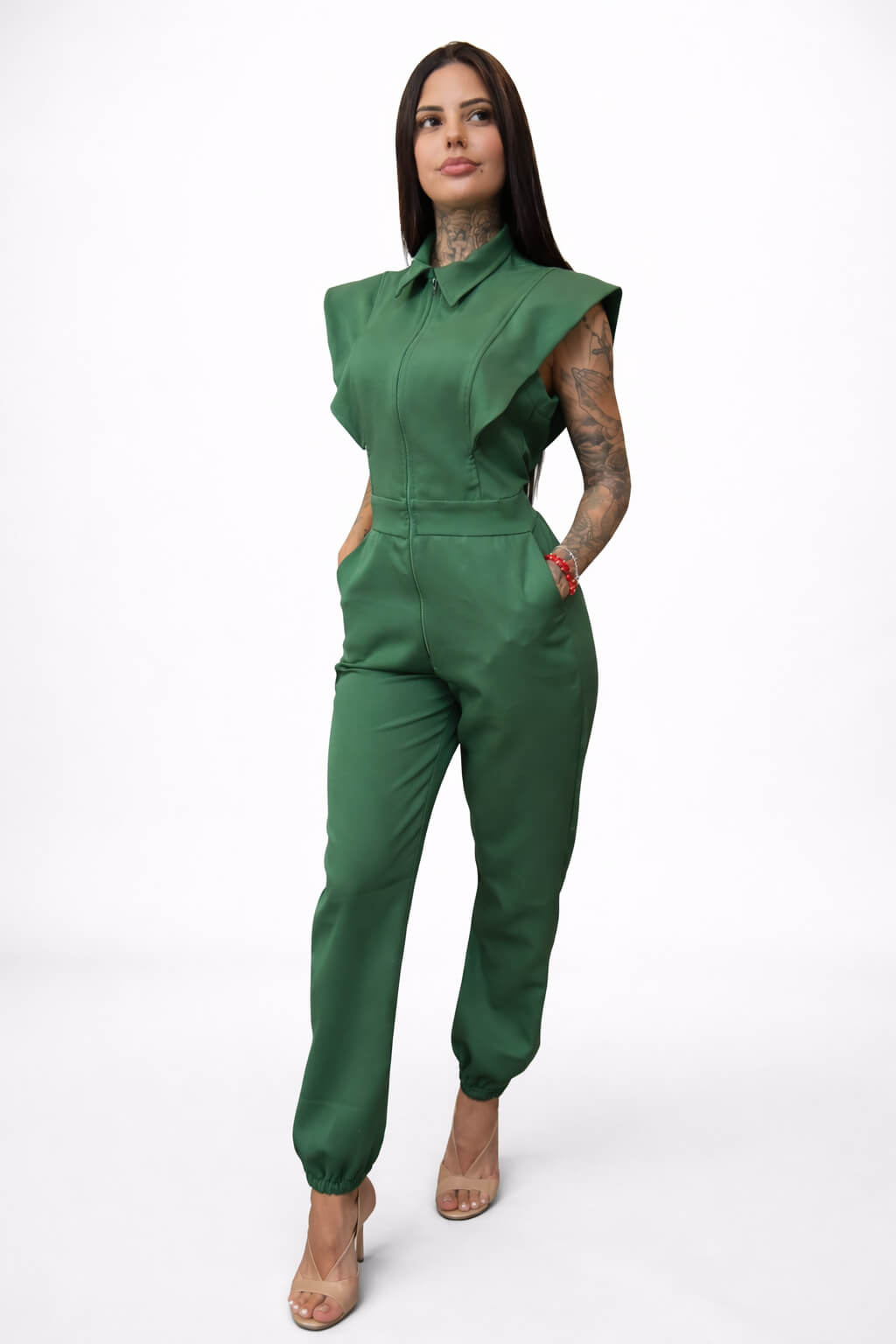 Confeccionado em tecido de toque macio e encorpado, o macacão oferece excelente vestibilidade, não marca com facilidade e mantém o visual alinhado ao longo do dia. A cor verde jade transmite confiança, modernidade e profissionalismo, perfeita para quem quer se destacar com estilo.